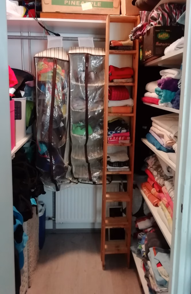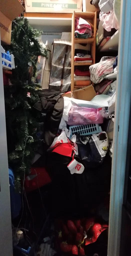 Kuvan kohteessa tavoitteeksi määriteltiin tehdä kahdessa tunnissa yhdessä niin paljon kuin mahdollista, että asiakas pystyisi jatkamaan itse urakan loppuun. Yksin aloittaminen tuntui ylitsepääsemättömältä, koska tavaramäärä oli valtava. (Kuvat julkaisen aina asiakkaan erillisellä luvalla.)