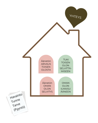 Sinulla on ikään kuin käytössäsi useita eri ovia, joista voit avata yhden tai useamman yhteyttä rakentaaksesi - havaintojen, tunteiden, tarpeiden ja pyyntöjen ilmaisu toimii vuorovaikutuksen perustana 🤎