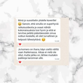 Ota yhteyttä niin mietitään, miten voisin parhaiten olla sinulle avuksi!